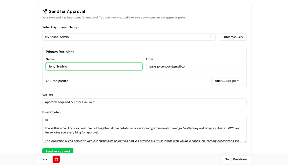 Approvals can be sent to the right people based on your school’s existing workflow. Whether it’s the year coordinator, deputy, or business office, VTR fits how your school already works while reducing duplicated admin.